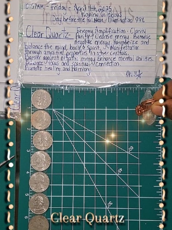 Crystal meaning/properties, Date/Time it was created. Moon Phase during creation.